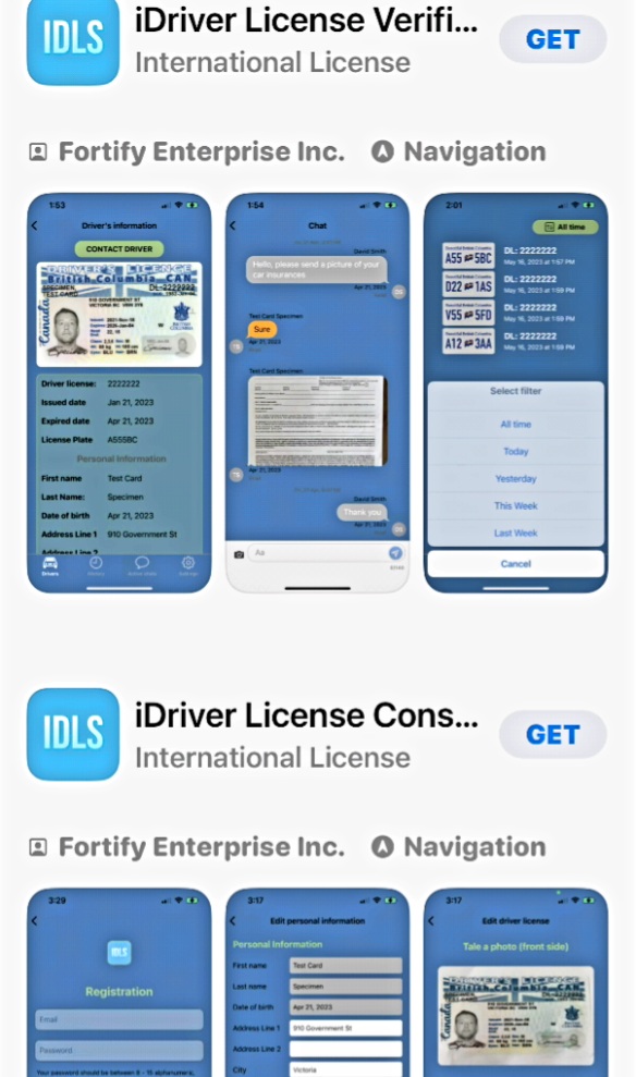 IDLA – International Driver’s License Application is under review by the team at Apple stores. Once approved, it will be accessible to anyone. IDLA is being met with great interest by police and ministerial safety authorities in both urban and rural settings in Canada.